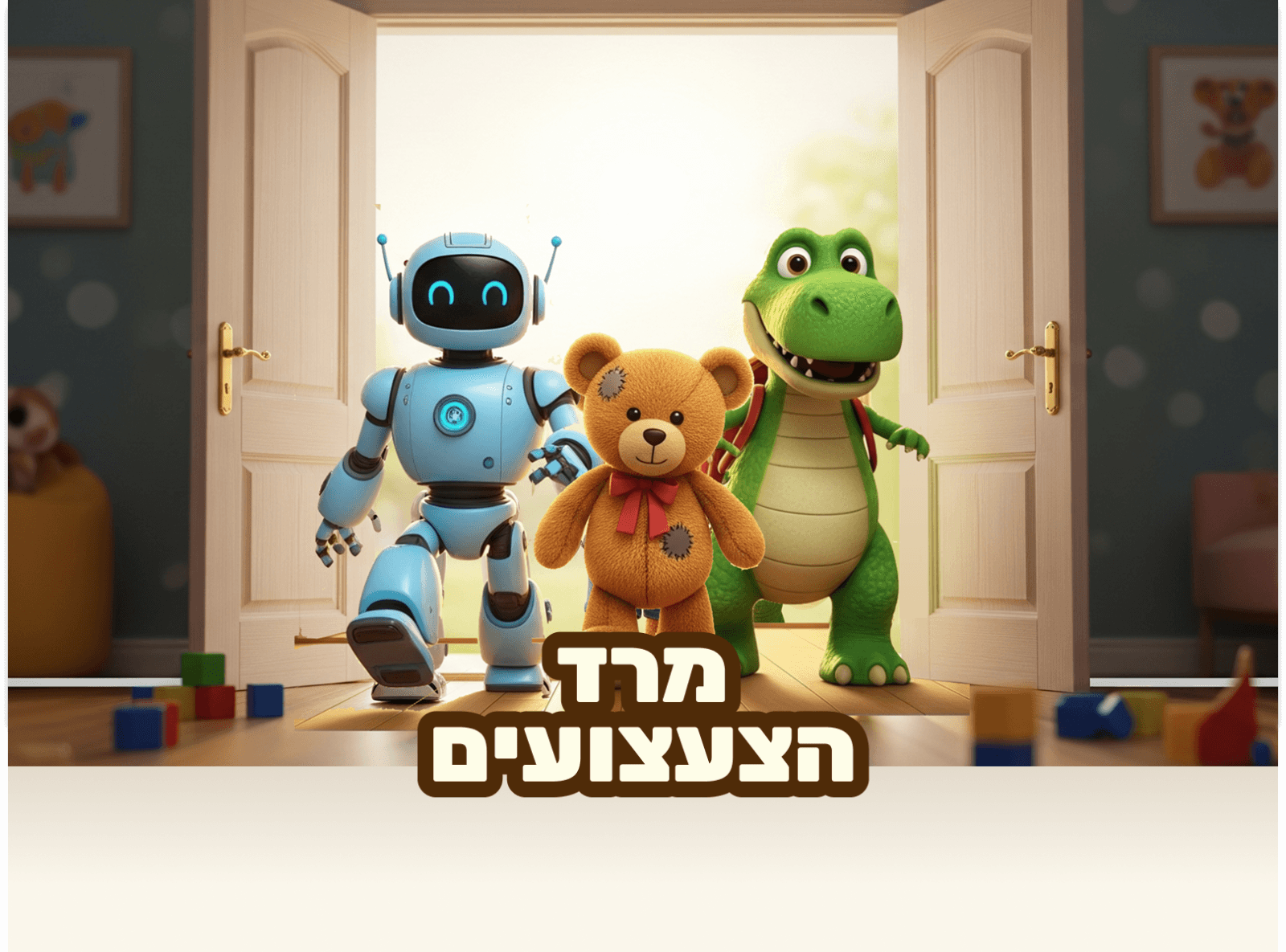 חדר הבריחה הכי מצחיק, מפתיע ומשוגע – נוחת אצלכם בבית! לילה קסום אחד... כל הצעצועים התעוררו לחיים! נמאס להם שהם נשכחים על הרצפה, אז הם החליטו למרוד! רק אם תצליחו לבצע את המשימות שלהם, הם יסכימו לחזור להיות צעצועים שוב... חדר בריחה מושלם לילדים: משימות כיפיות, מצחיקות ומלאות דמיון! והכי כיף - את החדר בריחה הזה אתם יכולים להכין אצלכם בבית! בקלות, בזול, ללא צורך בהכנות מיוחדות, פשוט נכנסים ומתחילים!!! זה מושלם עבור ימי הולדת, בית מארח, יחד כל המשפחה או פשוט אחר הצהריים עם החברים!